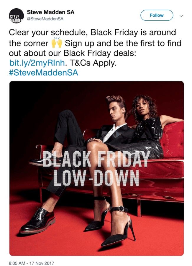 Email marketing is one of the most effective tools if you have a mailing list of your previous buyers or target audience. We know that Steve Madden can in no way be equalled to small businesses yet their ingenious Black Friday marketing campaign can be replicated by a local business.