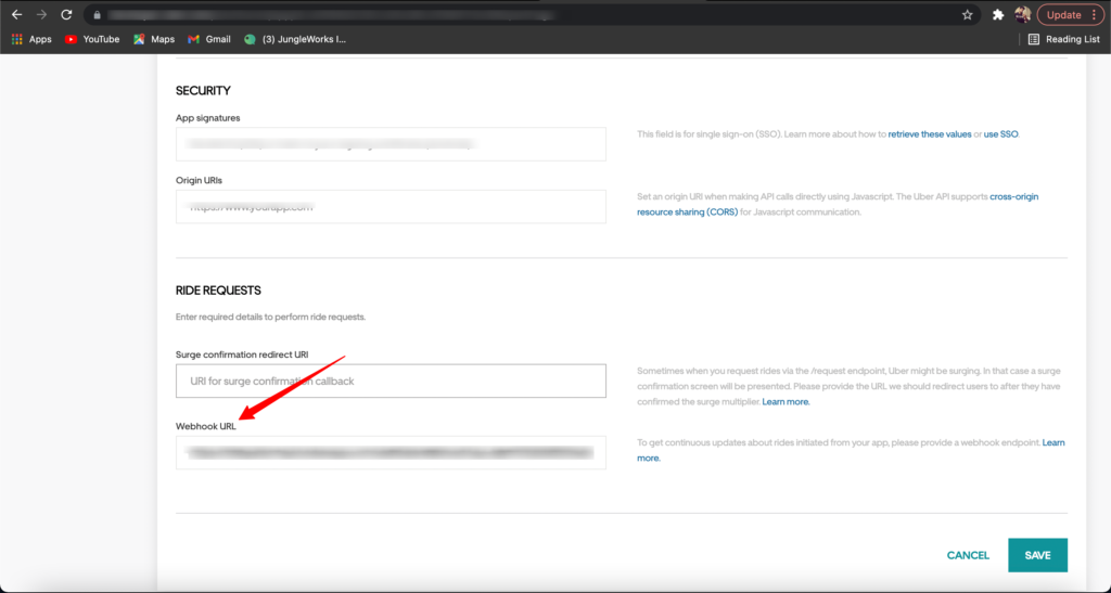 Configure Webhook URL: https://api-3112.tookanapp.com/uberEats/webhook?api_key=Tookan V2 API key