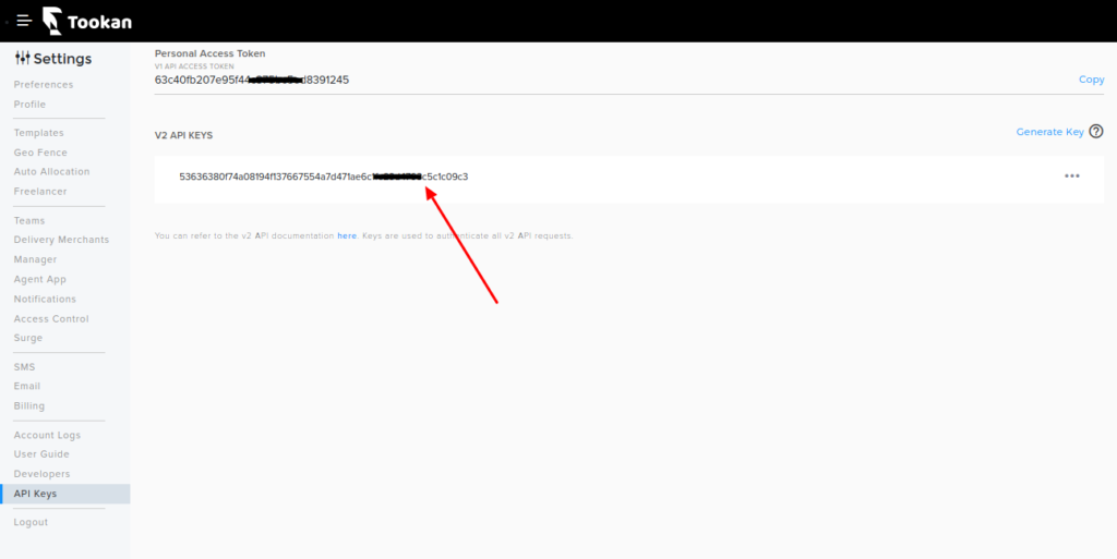 Step2: Configure Webhook under Developer Account settings using V2 API key of Tookan: